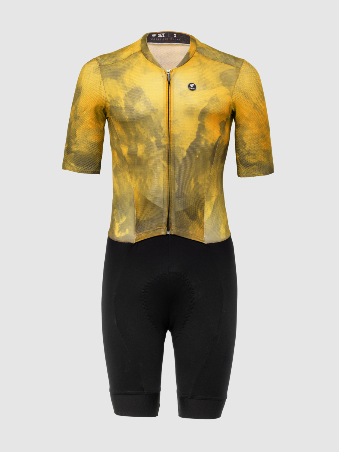 Magistrale UAE short-sleeve skinsuit combines the properties of our Magistrale UAEM01 short sleeve jersey with those of the Magistrale UAEM09 bib-shorts, in a garment for speed and performance enthusiasts.